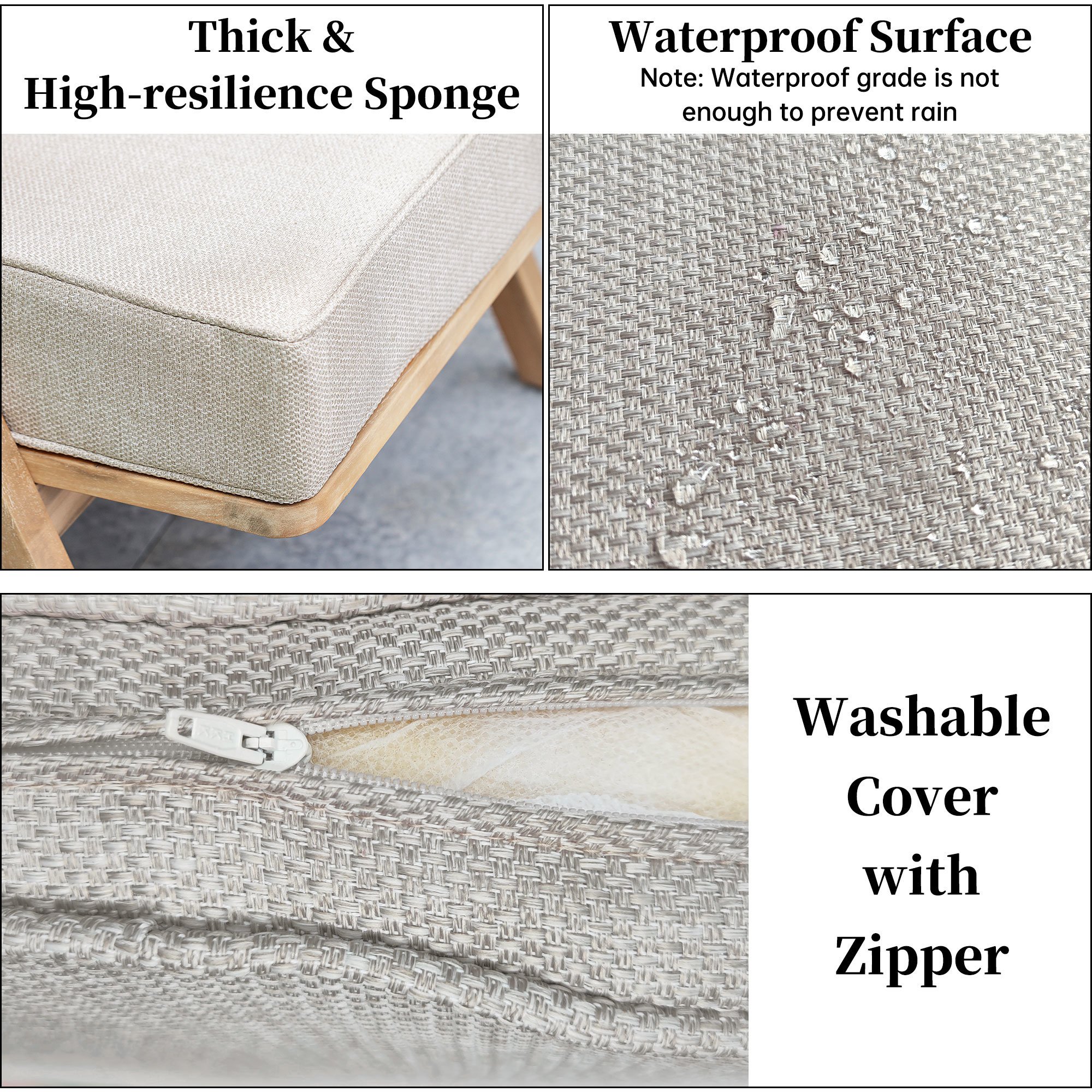 This weather resistant small patio furniture set made of hard and premium acacia wood, which ensures rustproof, beauty, not easy to crack or deform, and large weight capacity.