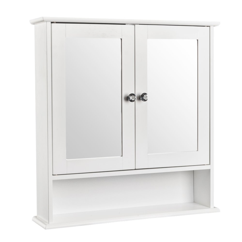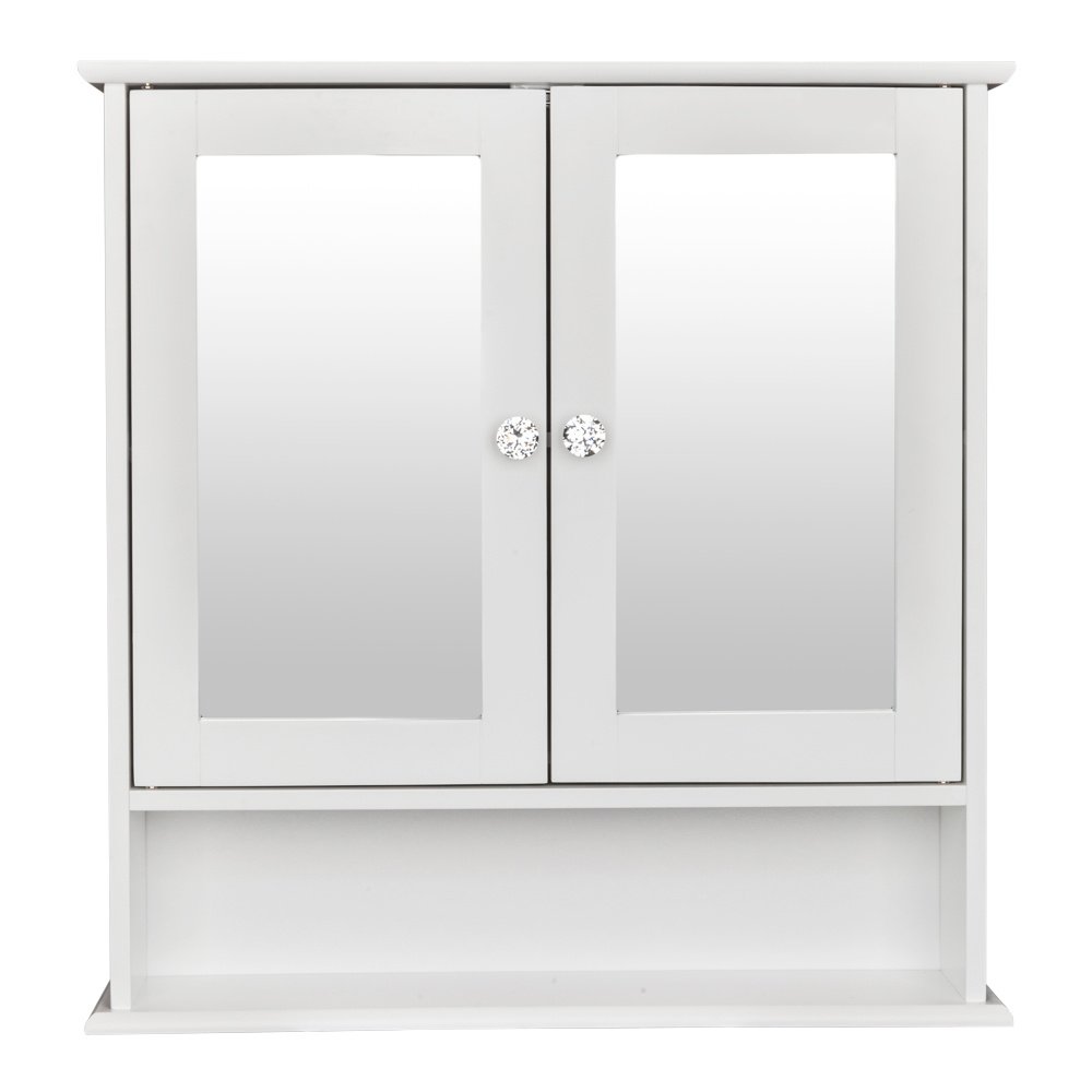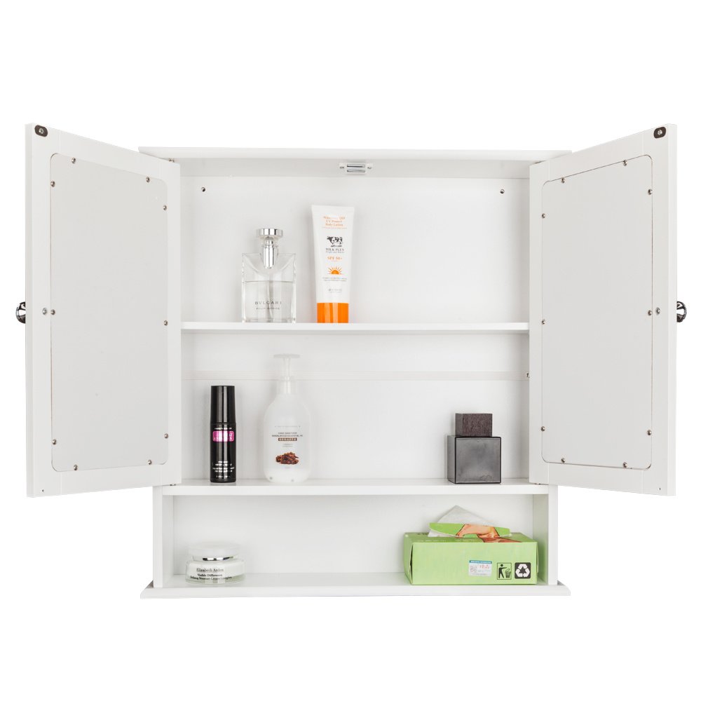 Home > Double Door Mirror Indoor Bathroom Wall Mounted Cabinet Shelf White