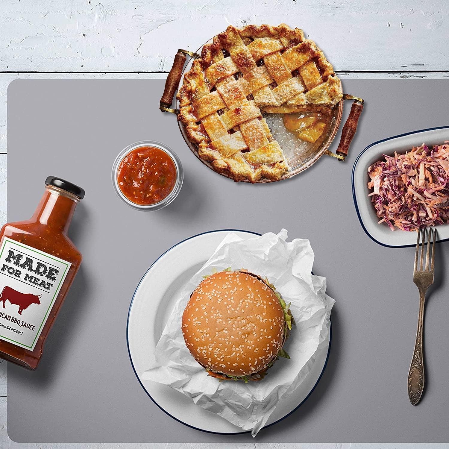 4.WIDE USES: Such a mat can be used as countertop protectors, table mats, or dinner mats. It is perfect for kneading and dough rolling to bake the flour food you like, for example, pastry, pizza, pasta, tart, lasagna, dumplings.