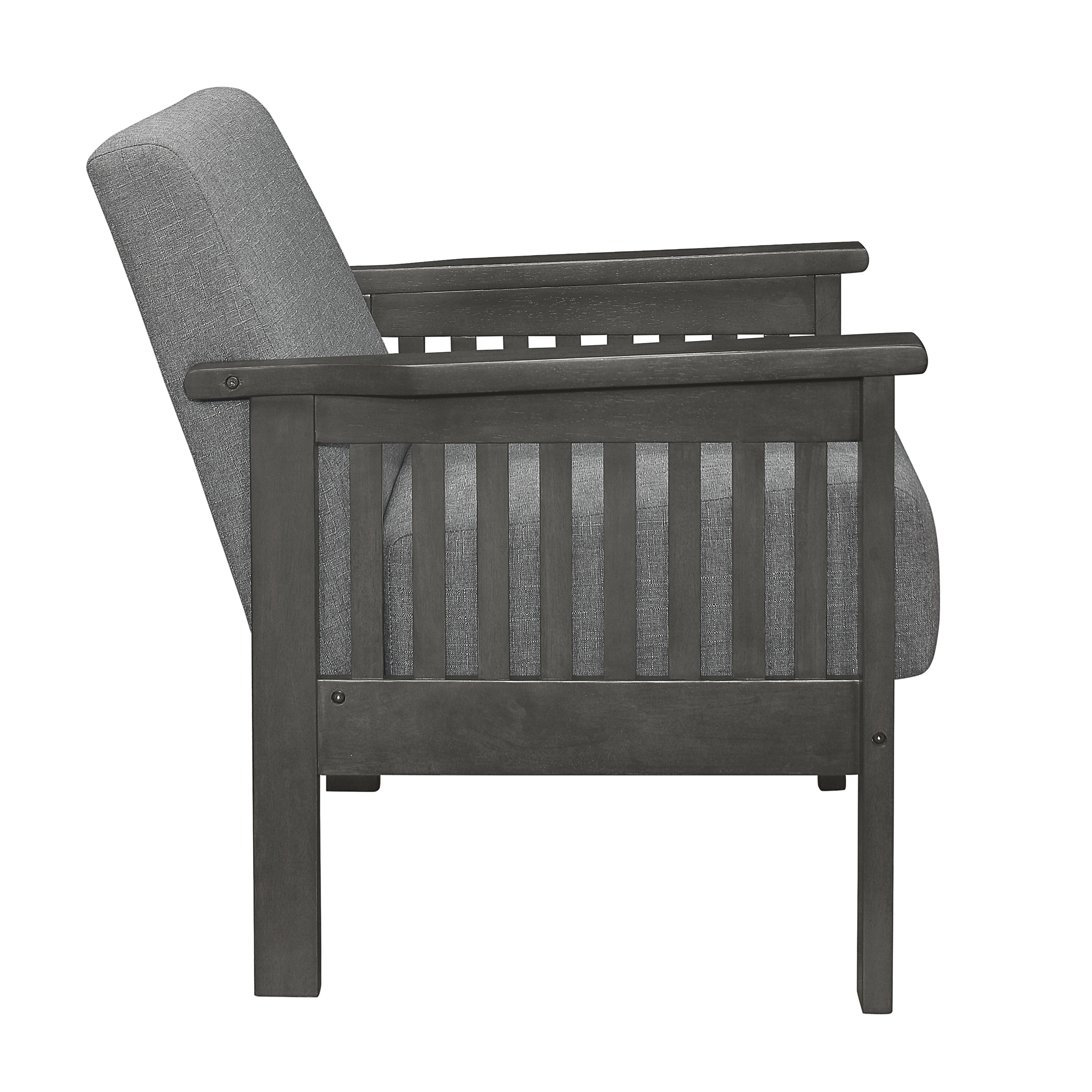 Designed with inspiration from the Arts & Crafts movement, the Lewiston Collection will be a classic addition to your home's décor. The chair's transitionally styled legs and vertical slat-supported wood arms are finished in an antique gray, providing complementing contrast to the gray linen-like fabric covering.PRODUCT DIMENSIONS: Overall Dimension: 27.5" x 31" x 32"HSeat Width: 22"Seat Depth: 21.5"Seat Height: 19.5"Arm height: 24.5"Listing Includes: One Accent Chair Only.Sofa & Loveseat: Not included.Simple Assembly Require.