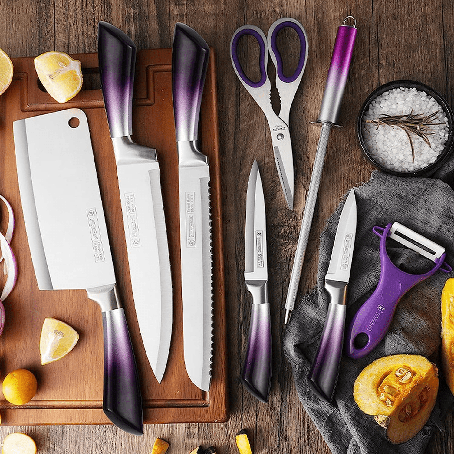 Knife knife set kitchen knife set chef knife set fruit knives sharp knife set color knife set cooking knife set stainless steel knife set knife set for kitchen kitchen accessories knife block set purple knife set cute knife set knife set with block