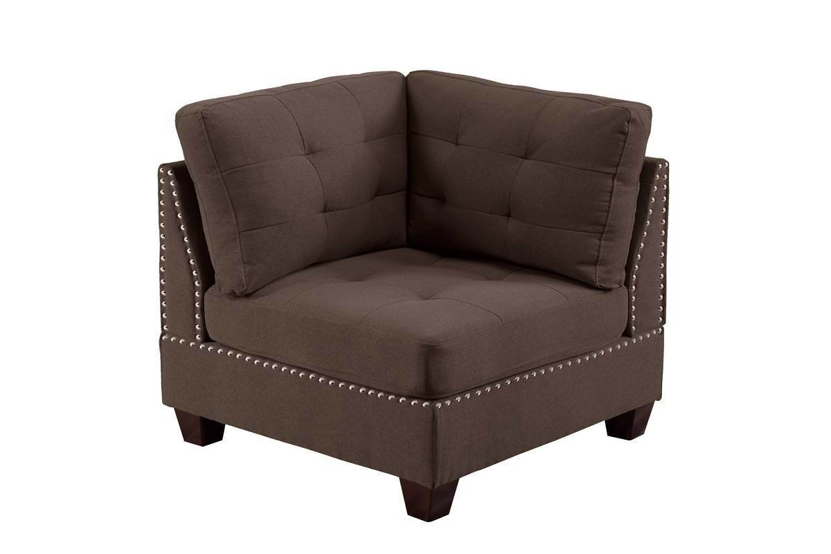 Home > Living Room Furniture Tufted Corner Wedge Black Coffee Linen Like Fabric 1pc Cushion Nail heads Wedge Sofa Wooden Legs