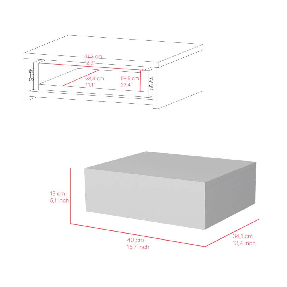 Step into the future of bedroom design with the Isola Floating Nightstand. Embodying sheer elegance, this wall-mounted marvel defies gravity, offering a seamless blend of form and function. The ample top surface, measuring 15.7"W x 13.4"D, provides a pristine space for your nighttime essentials, while the generous drawer, sized 12.3"W x 23.4"H x 11.1"D, effortlessly houses your personal belongings. Crafted from the best in manufactured wood, durability is a given. Choose from a palette of finishes: dark brown, white, black, light gray, or macadamia to match any room's aesthetic.Dimensions:Height: 5,1" Width: 15,7'Depth: 13,4'Furniture Type: Ready to assemble (full assembly required).Certifications: CARB phase II compliant – TSCA Title VI Compliant.Warranty: 1-year warranty coverage in wooden parts- 1-year warranty coverage in hardware pieces since its manufacturing date found in the lot number printed in the product box.