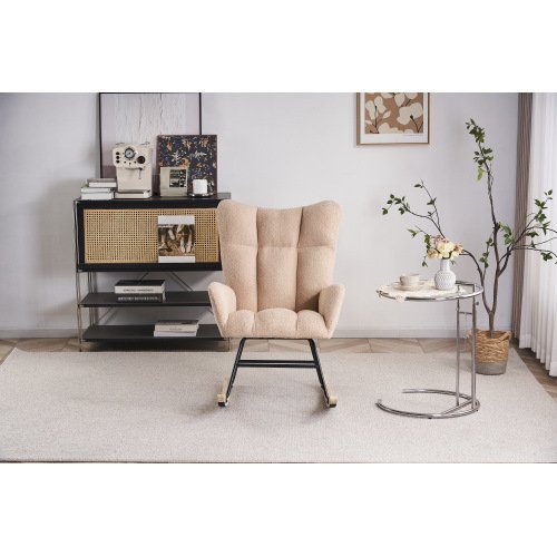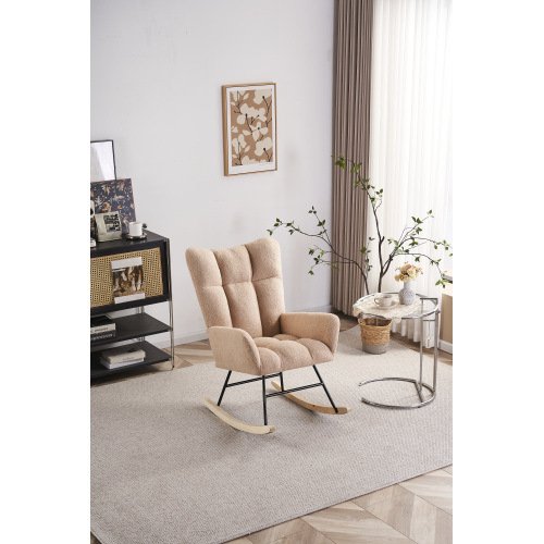 Home > Rocking Chair Nursery, Solid Wood Legs Reading Chair with Teddy Fabirc Upholstered , Nap Armchair for Living Rooms, Bedrooms, Offices, Best Gift,Teddy