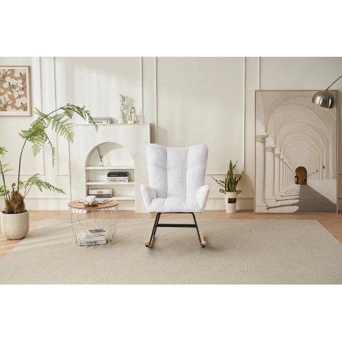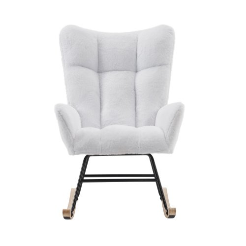 Home > Rocking Chair Nursery, Solid Wood Legs Reading Chair with Teddy Fabirc Upholstered , Nap Armchair for Living Rooms, Bedrooms, Offices, Best Gift,Teddy