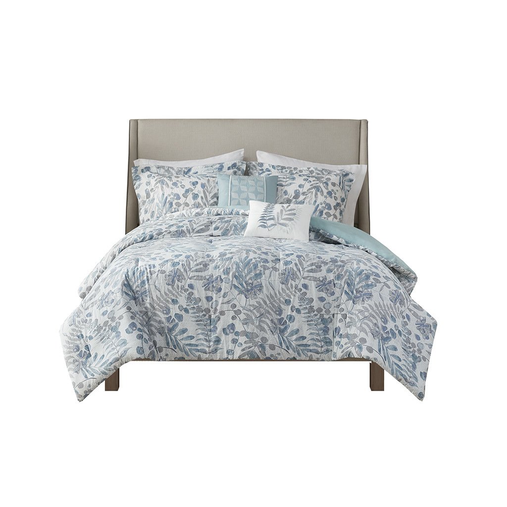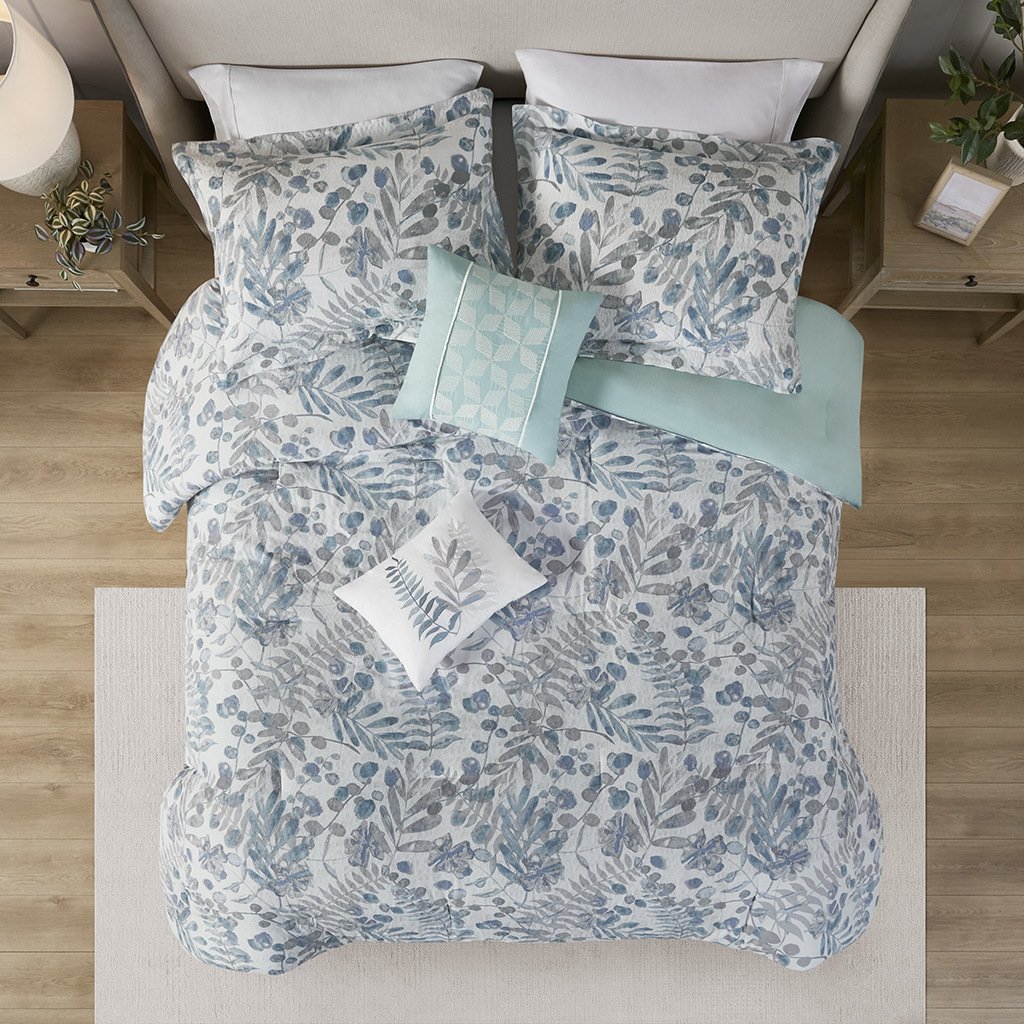 Set includes comforter, 2 matching shams and 2 throw pillows