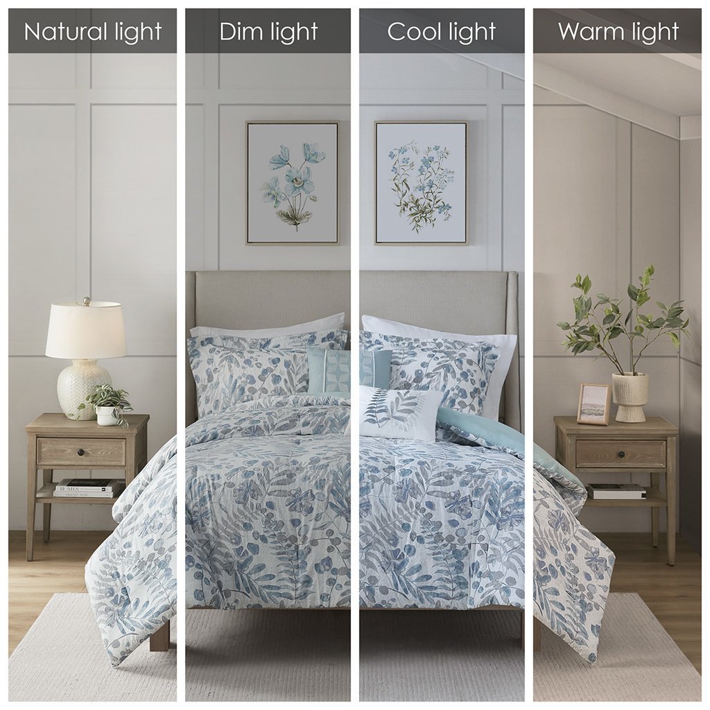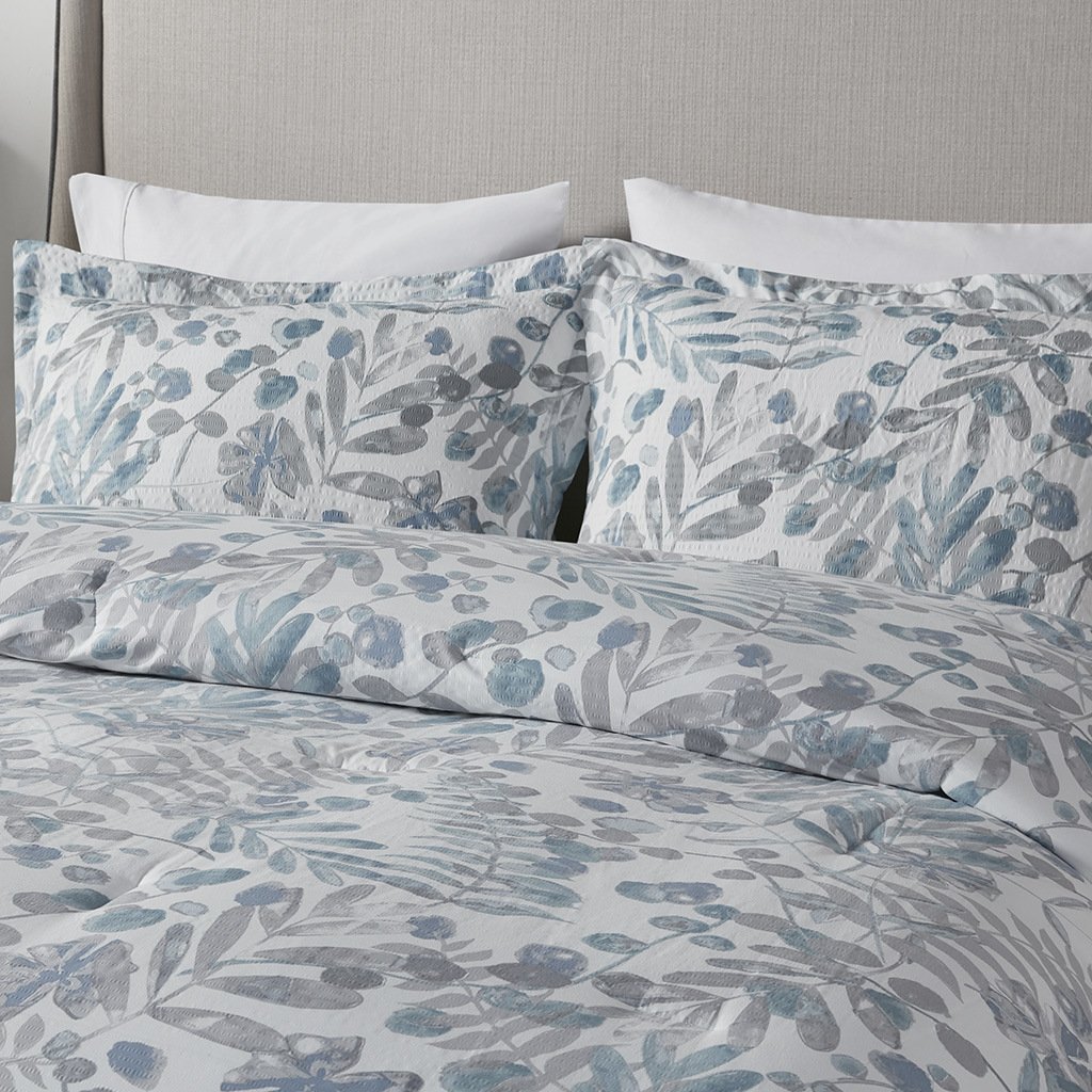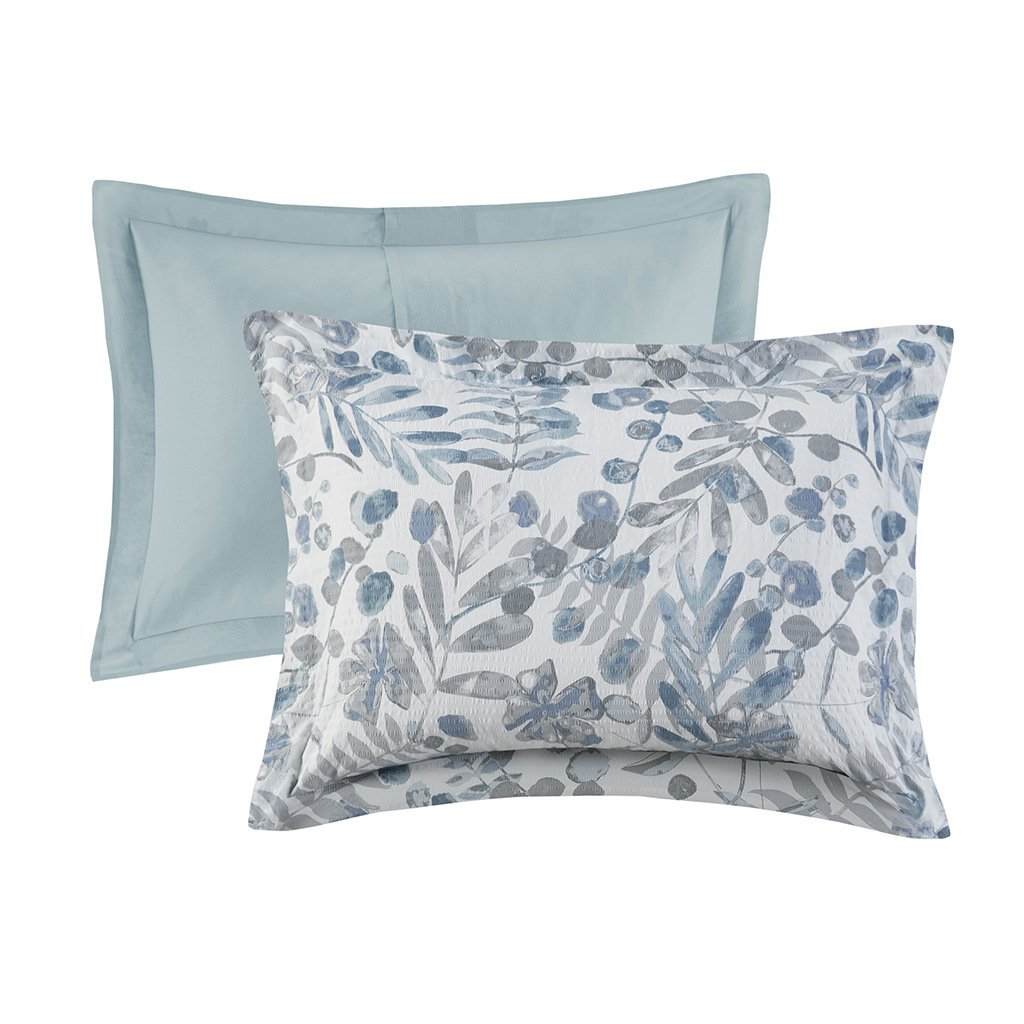 Featuring three different floral and botanical print designs separated by lace trims, this seersucker microfiber comforter set exudes shabby chic/farmhouse style that adds a touch of elegance to any bedroom. The two decorative pillows feature gathered fabric and embroidery with lace trim and ruffles, adding to the overall charm of the set. Colors featured in this set include various shade of aqua, blue, green, yellows, and whites. The comforter and pillows are filled with hypoallergenic polyester filling that is treated to be dustproof, ensuring a restful and comfortable sleeping experience. This machine washable bedding set features an antimicrobial treatment, which inhibits bacteria growth and keeps the bedding fresher for longer.