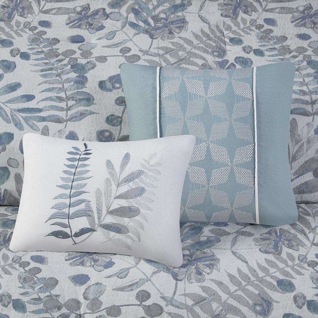 5 Piece Seersucker Comforter Set with Throw Pillows