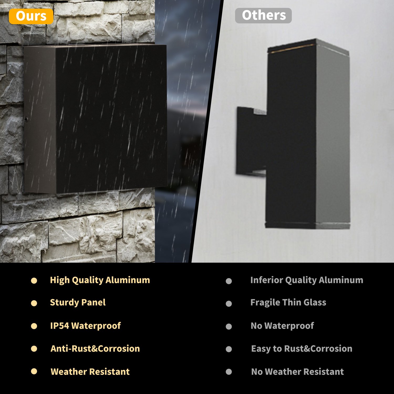 2.Durable and quality:The up down led wall lampIs die-cast aluminum body, pure aluminum manufacturing, will not corrode, will not rust, can be used for many years will not become ugly, LED integrated patio light can long time use.