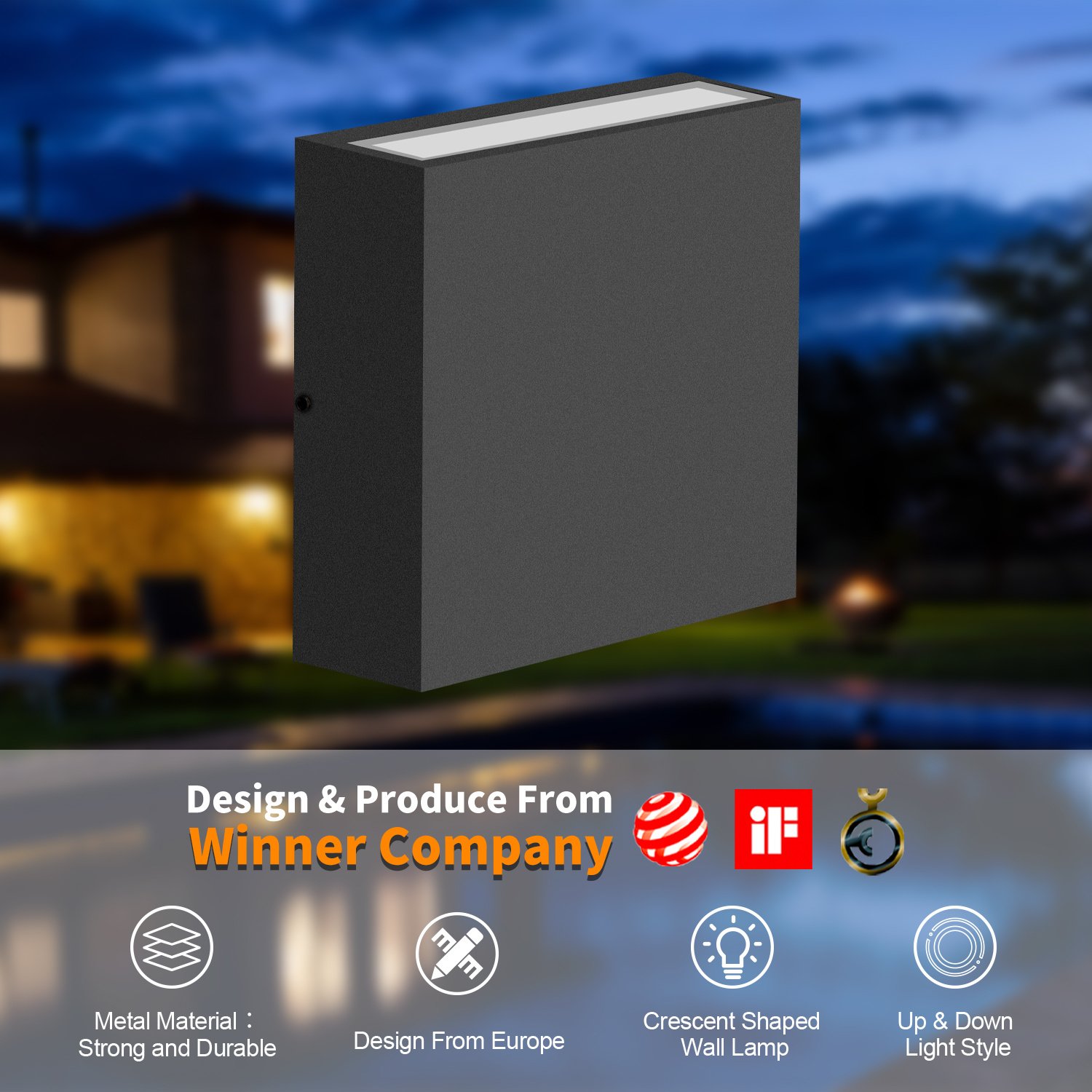 Good design; good material; good craftsmanship: Our elegant and classic design outdoor lights from well-known European designers. Many of our exterior lighting have won the Red Dot; German Design; IF Design Award many times. Constructed of 100% heavy-duty rugged die-casting aluminum; this LED wall sconce is shock; making it has a long lifespan of rated over 50 000 hours of use more durable.