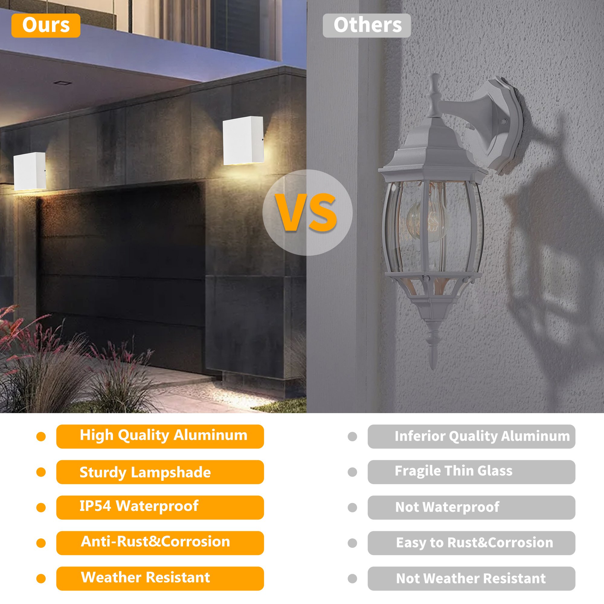 Good design; good material; good craftsmanship: Our elegant and classic design outdoor lights from well-known European designers. Many of our exterior lighting have won the Red Dot; German Design; IF Design Award many times. Constructed of 100% heavy-duty rugged die-casting aluminum; this LED wall sconce is shock; making it has a long lifespan of rated over 50 000 hours of use more durable.