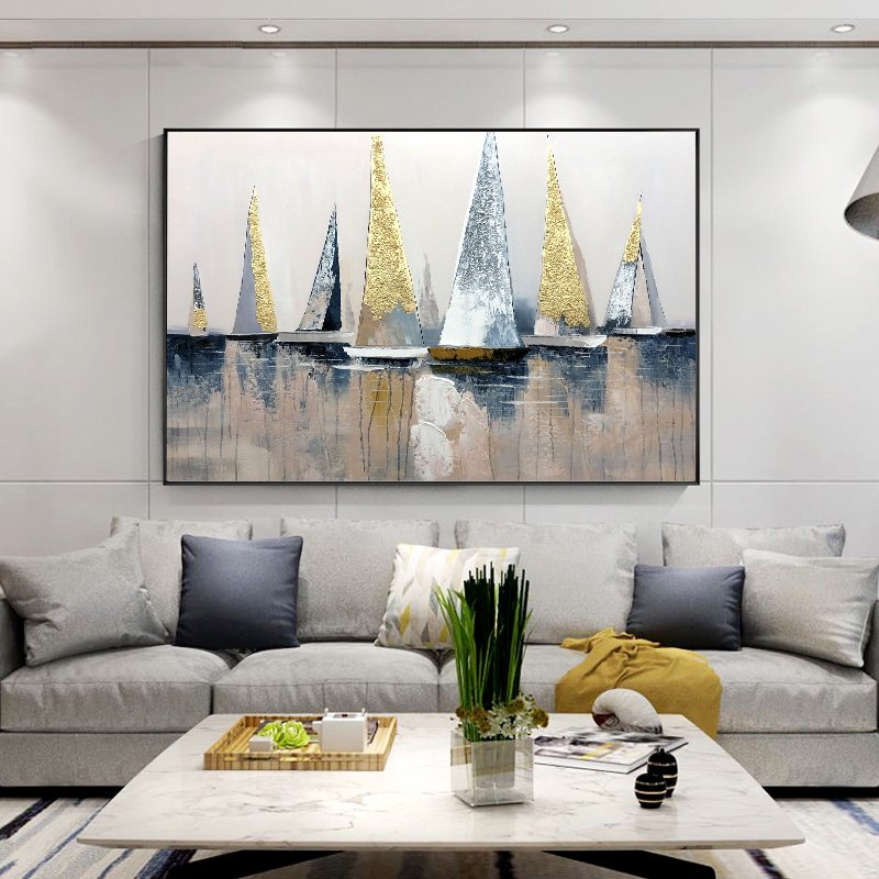 100% Hand Painted Abstract Modern Boat Pictures Art Oil Painting On Canvas Wall Art Wall Painting For Living Room Home Decoration