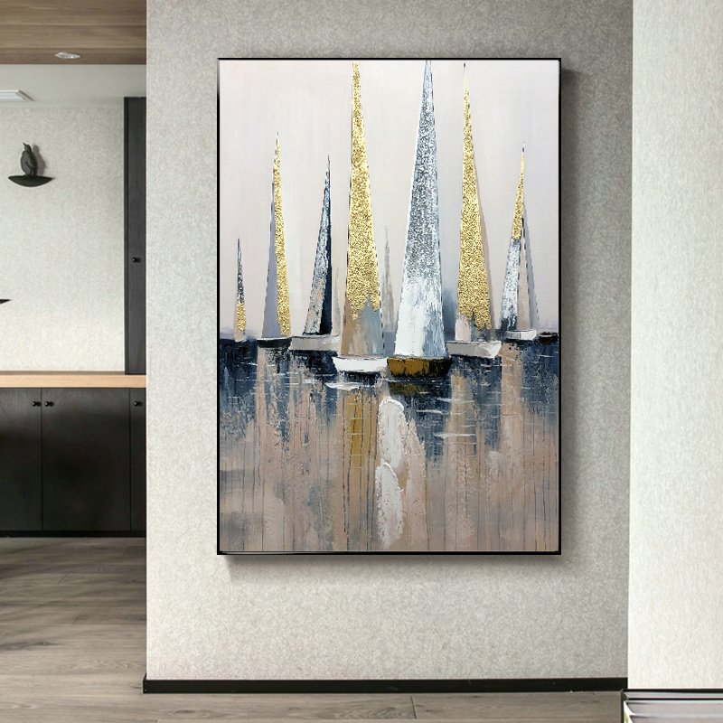 100% Hand Painted Abstract Modern Boat Pictures Art Oil Painting On Canvas Wall Art Wall Painting For Living Room Home Decoration