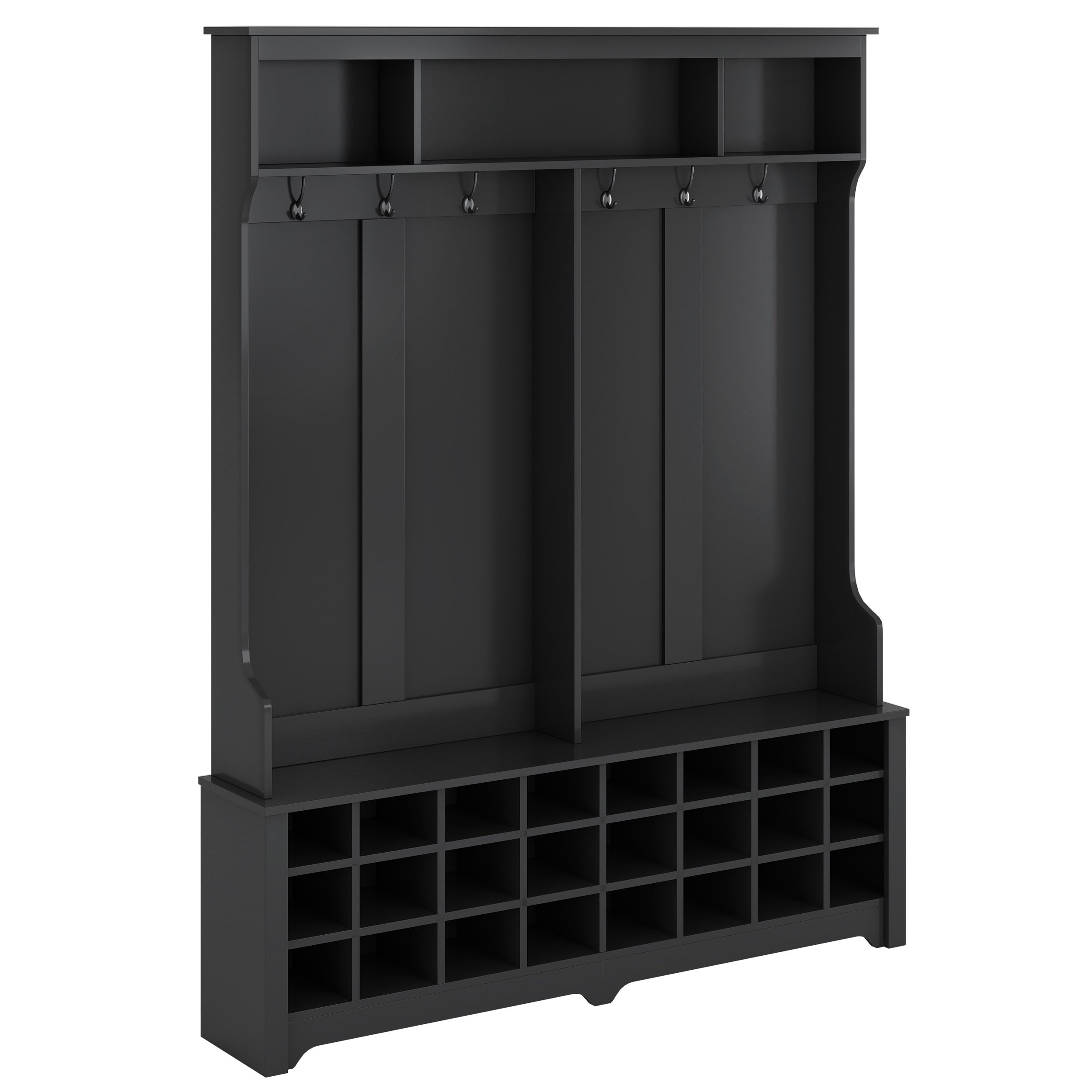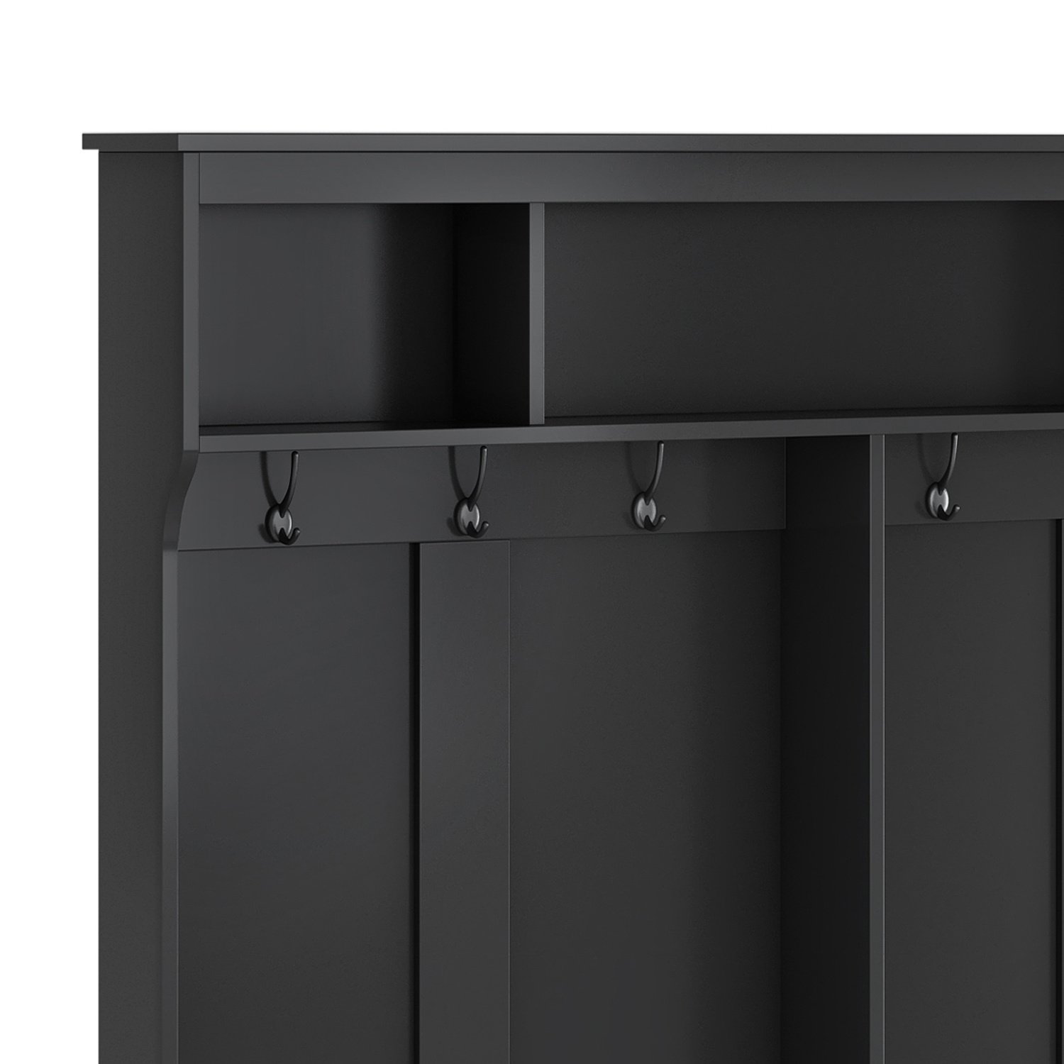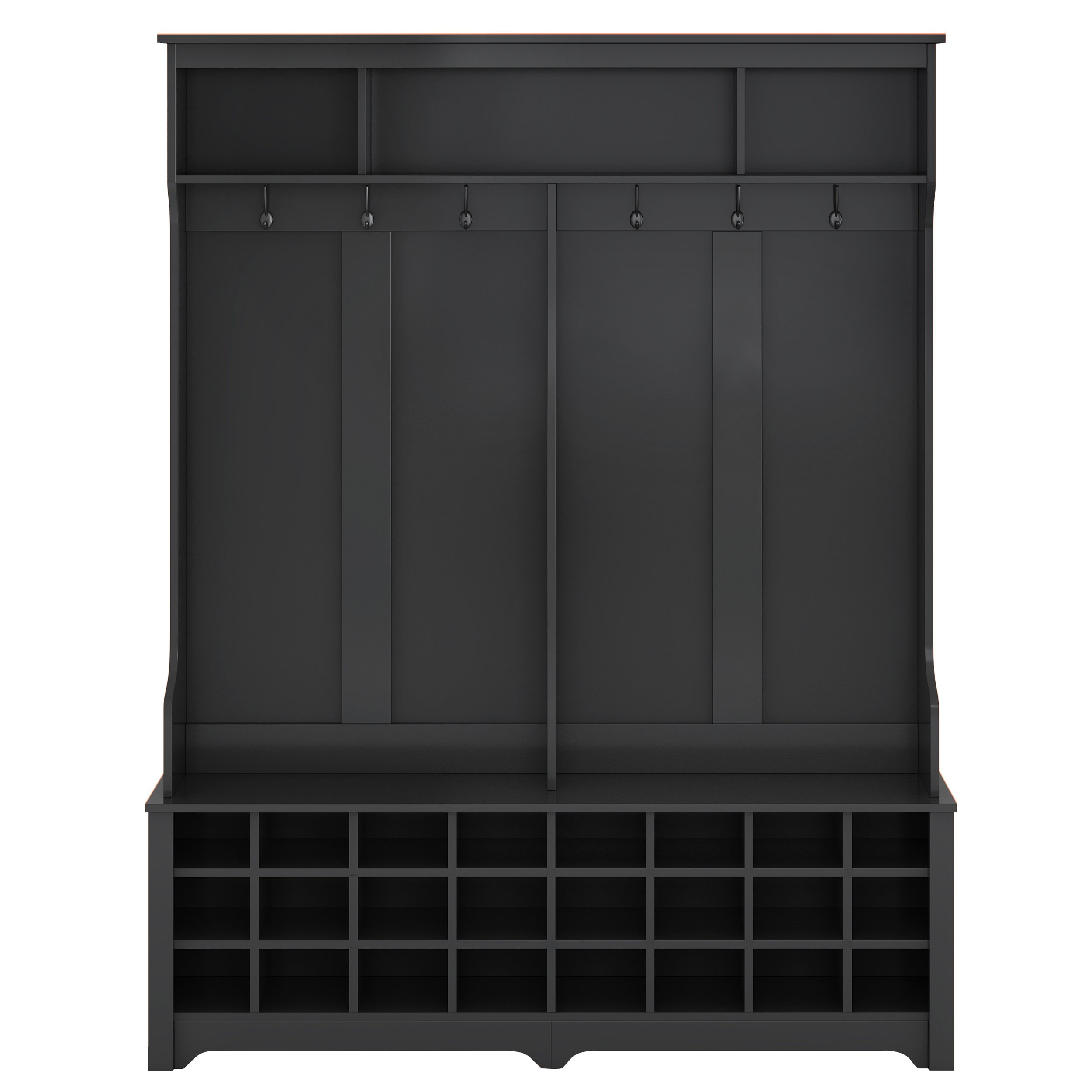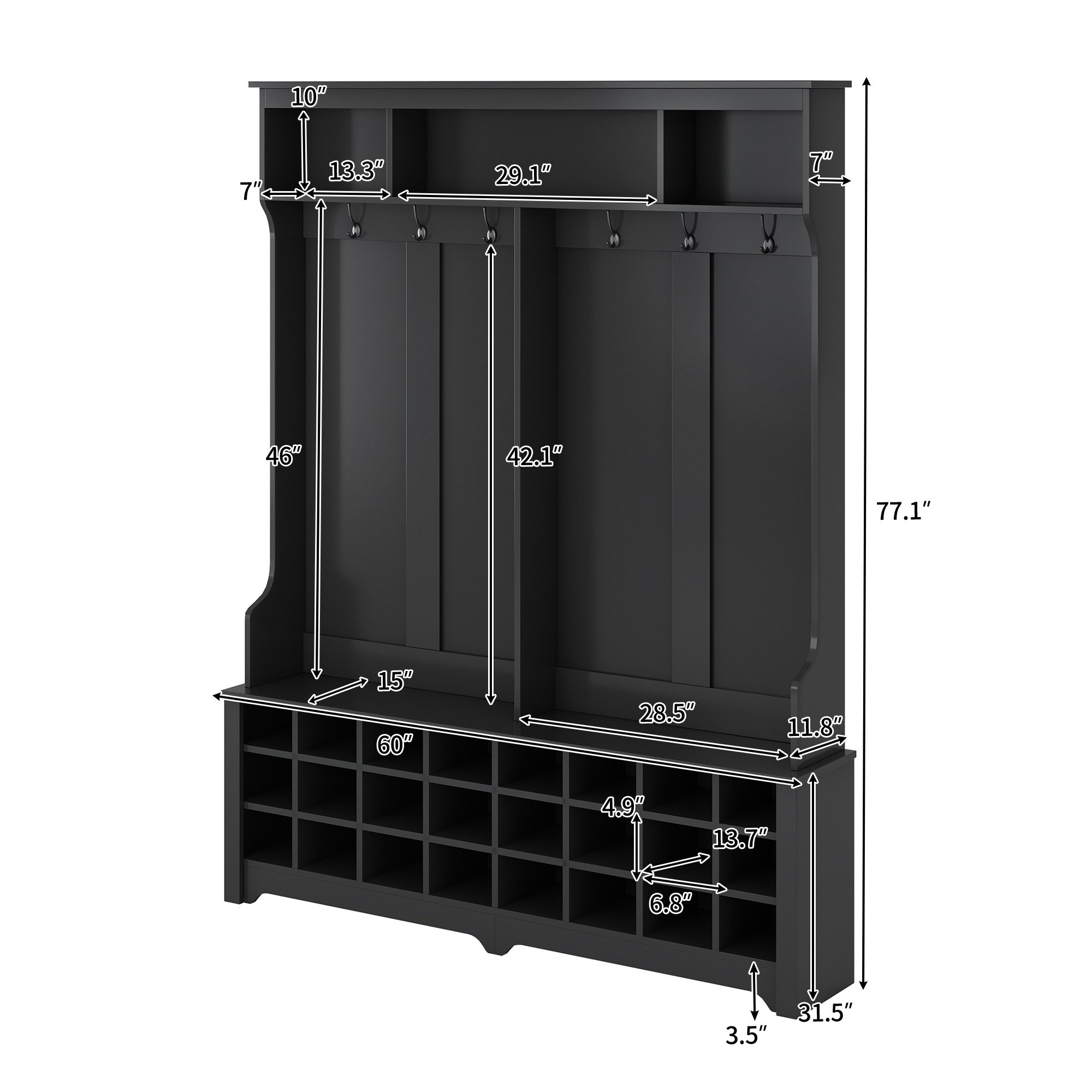 This modern style hallway coat rack has simple and clean lines; and the multiple functional design makes this furniture be a perfect choice for your entryway space. Several kinds of storage space offer ample and different space to storage different size of items. The number of shoe cubby at the bottom of this furniture are rich to 24; this part will be a great place for your shoes. Details and accessories for safety also make it easy for users to use in daily life. High quality materials guarantee the stability and durability in long-term usage. White and black color options of this product allow you to pick the prefer one as you wish.