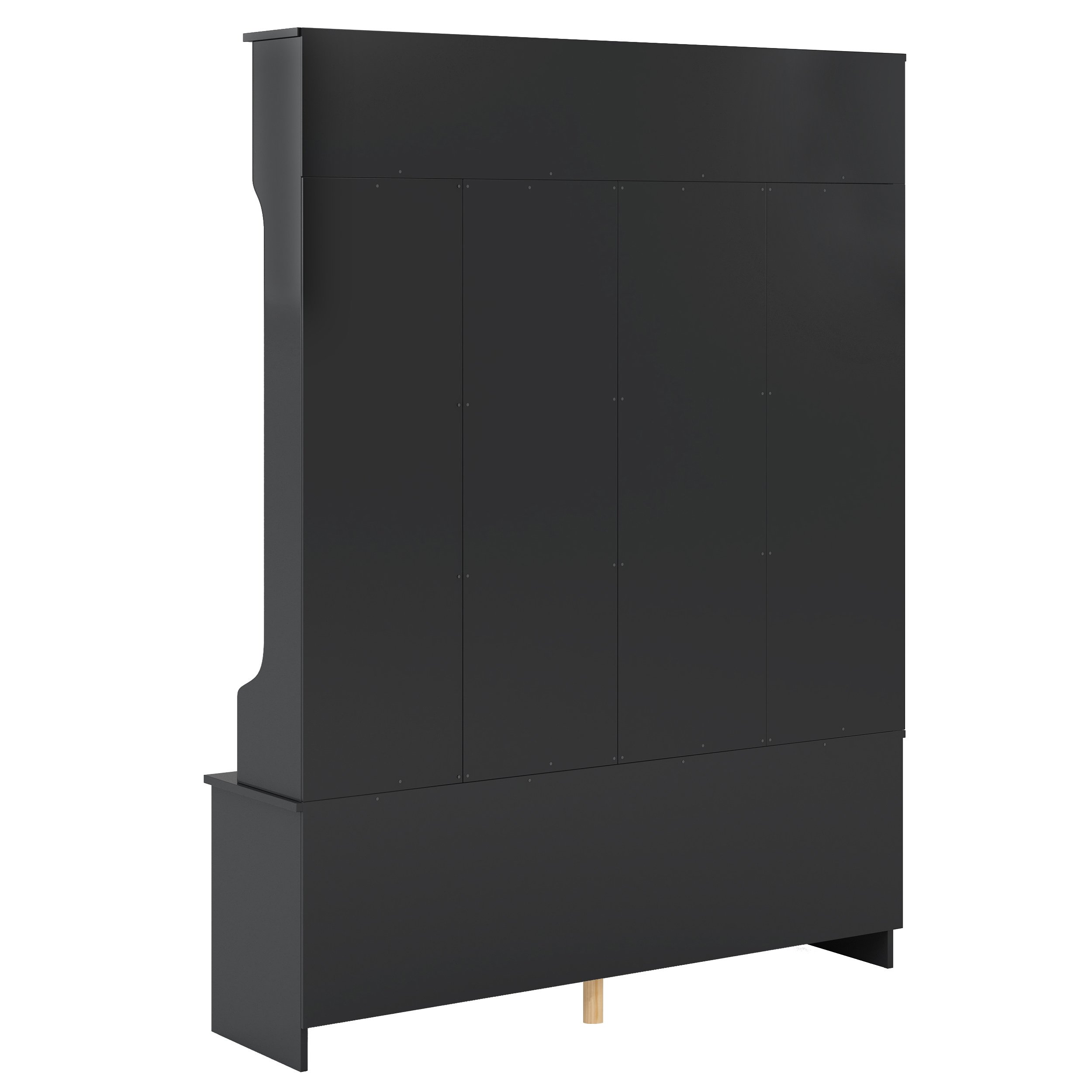 Such a functional furniture located at entryway needs high quality material to ensure the stability and long-term usage. In this case; this hallway coat rack is made of MDF boards to guarantee the durability in usage. The 2-side backboard of this furniture is processed with wood grain on white one; and with pure black on black one.