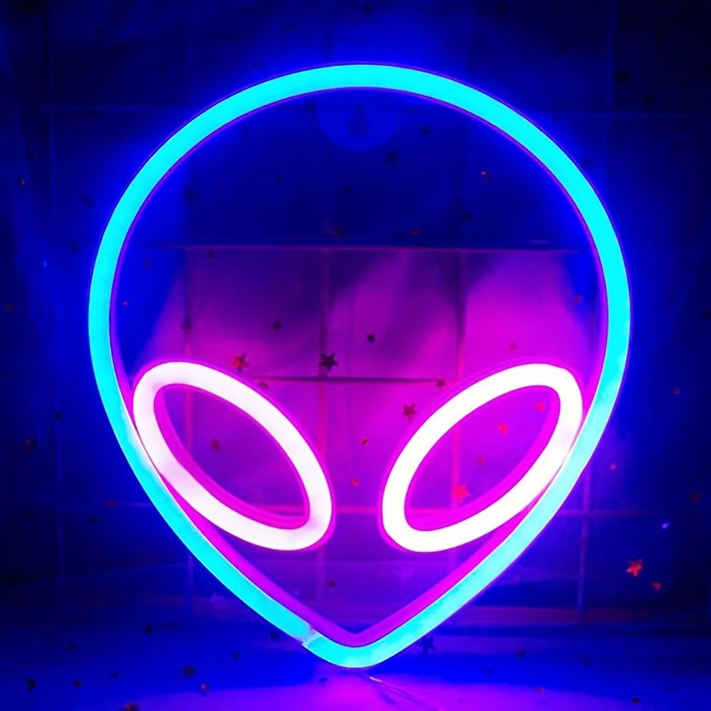 Home > 1pc Alien Shape LED Neon Sign, USB & Battery Powered Novelty Neon Mini Night Light, Novelty Wall Lamp With 1pc Hook For Bedroom Kids Room Party Home W