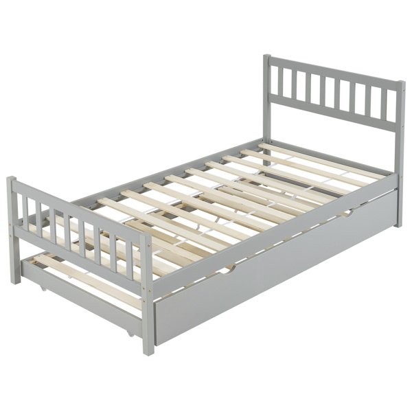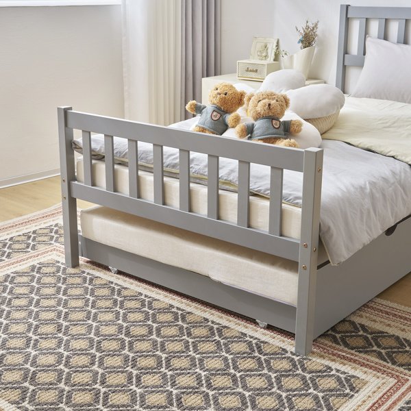 Single bunk bed with drag bed gray twin wooden bed pine particle board drag bed