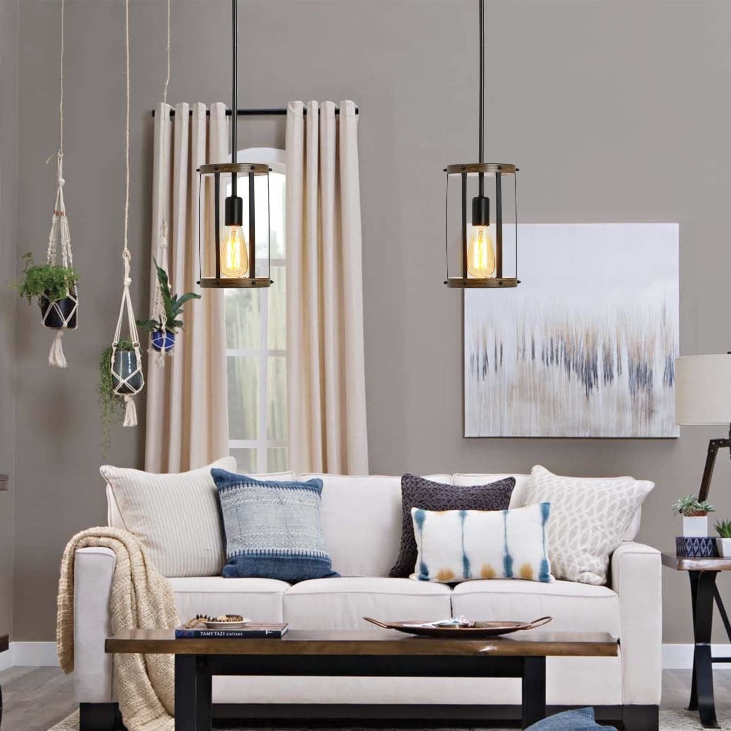 Adjustable Height The farmhouse pendant lighting fixture allowing you to adjust the hanging height to your preferences and design. The maximum height can be adjusted to 39.37" inches(ceiling plate to the bottom of cage shade), you can choose the suitable height for your different lighting needs.