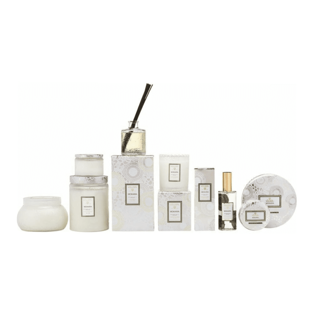 Mokara large jar candle is a classic embossed glass jar design that gets an update with discerning japanese inspiration. It is a beautiful hues glimmer as the flame illuminates delicate embossing. You’ll love using the jar for jewelry, flowers, or decor long after the candle is gone.
